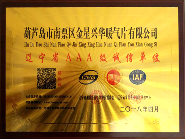 Huludao Shi NanPiaoQu JinXing XingHua Radiator Co., Ltd. is located in the beautiful and rich Luojiao village of Jinxing County, 30 kilometers northeast of Huludao city, Liaoning province. The company was founded in 1998, covering an area of 135 thousand square meters. There are 2 senior engineers, 80 senior technicians, and more than 700 senior casting technicians. With development for 20 years,Now it has developed into one of the large-scale production bases of cast iron heater.......【了解更多】 |